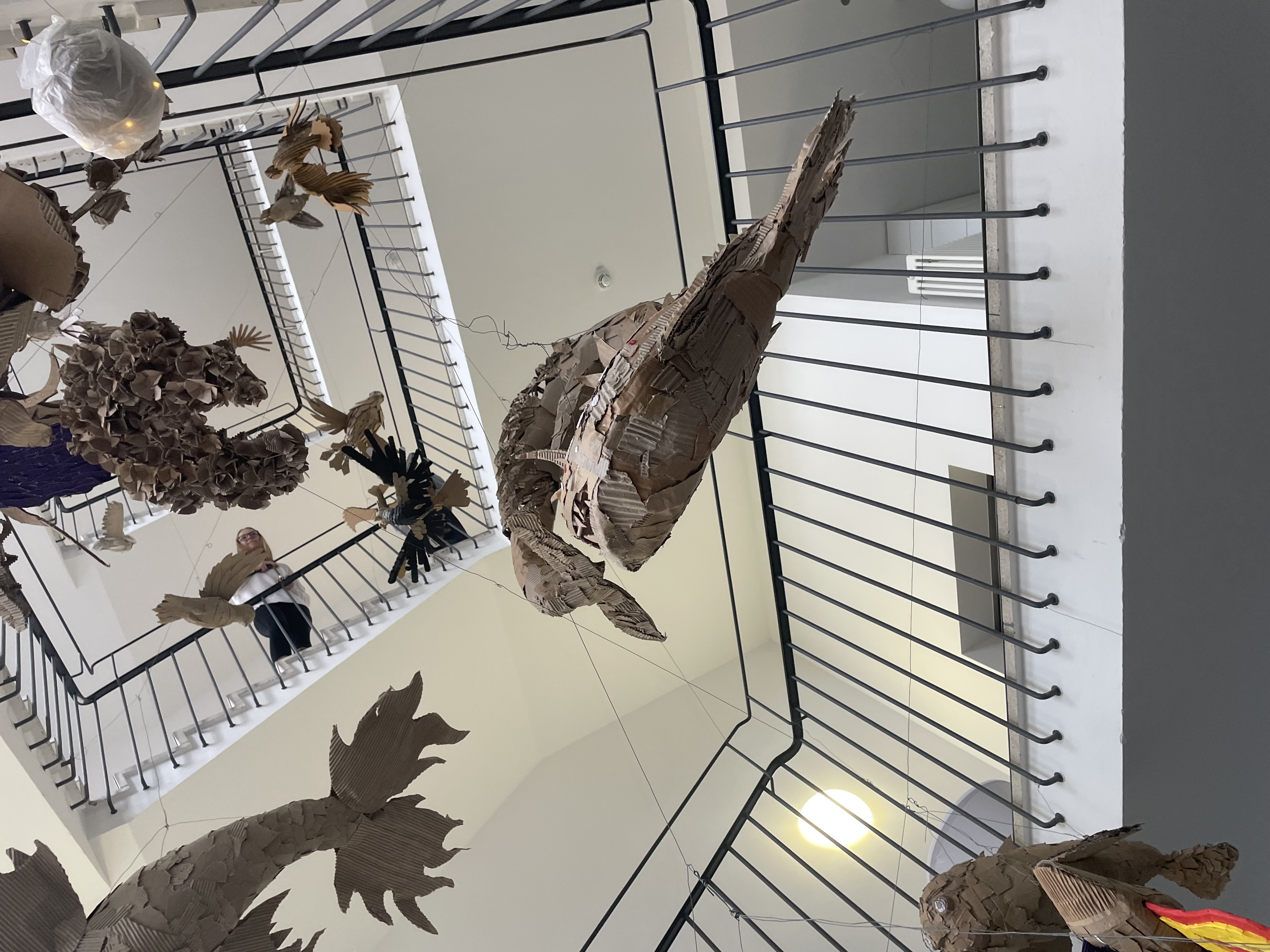 Die Kunststudierenden im ersten Jahr hatten seit Beginn des Schuljahres im Fach Plastische Gestalten die Aufgabe, ausschließlich aus Karton räumliche Gebilde zu erschaffen. Daraus sind wunderschöne Fantasiefische und Tauben entstanden. Jeder Studierende hat seine individuelle Note in die Tierfiguren eingebracht und seiner Kreativität freien Lauf gelassen.
